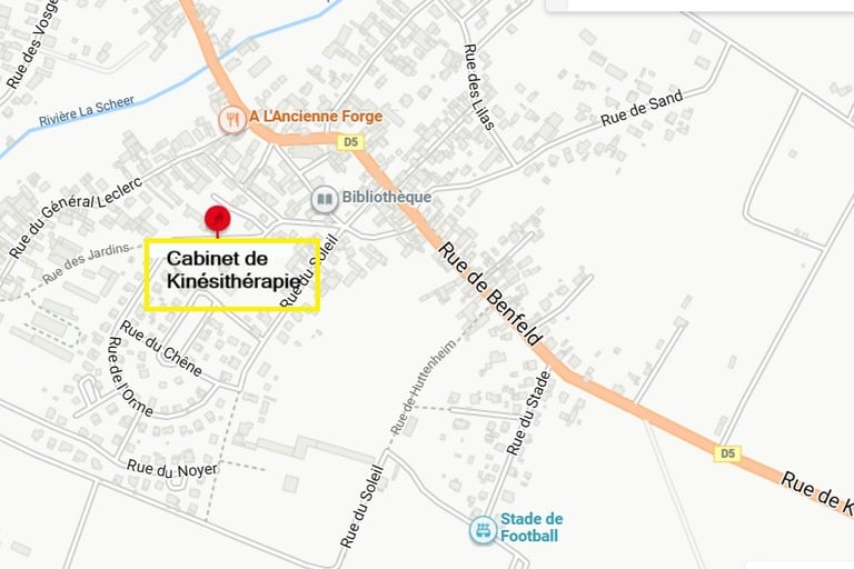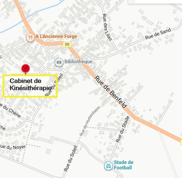 Le cabinet se situe au dessus du cabinet de Kinésithérapie.